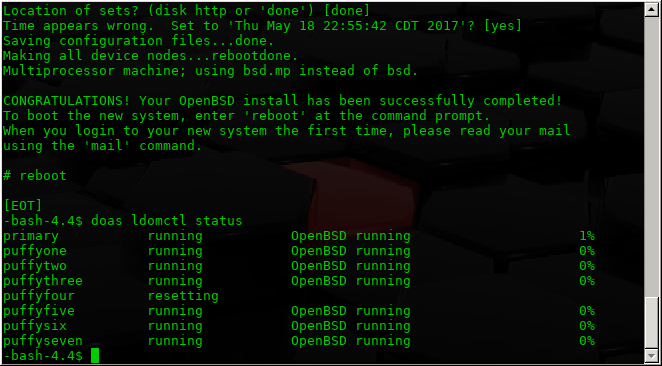 ldom1 running OpenBSD running 0%